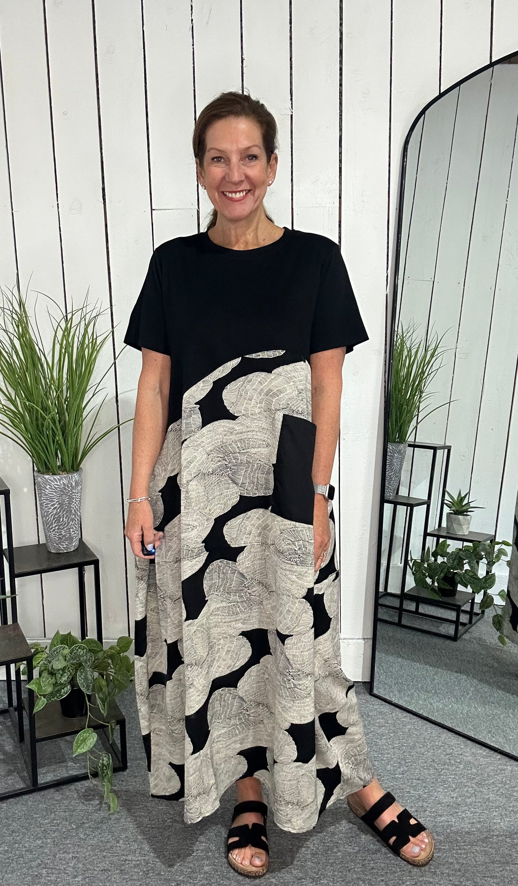 Mono Floral Midi Dress